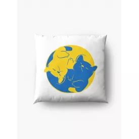 Подушка декоративная с принтом "Украинские коты Инь и Ян синий и желтый 3" Белый Кавун П000432