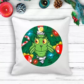 Подушка с новогодним принтом Гринч The Grinch в елках Белый Кавун П003602