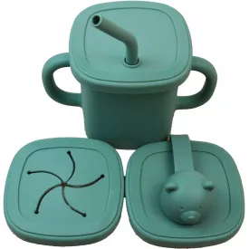 Тарілка на присосці з ложкою та виделкою Mega Zayka MGZ-0109 (Light-Blue) 350 мл