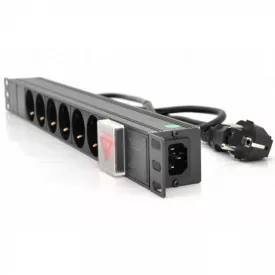 Силовой блок Ritar 19" 6 розеток, кабель 1.8m алюм. корпус с выключателем (1U-M6-K-C13)