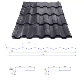 Металочерепиця Сталекс VALENCIA 350/15 0,50х1195 PEMA RAL 8019 Німеччина