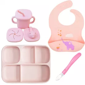Набор детской посуды 2Life Волна тарілка та прибори Y1 та слинявчик Букви Білий (v-12068)